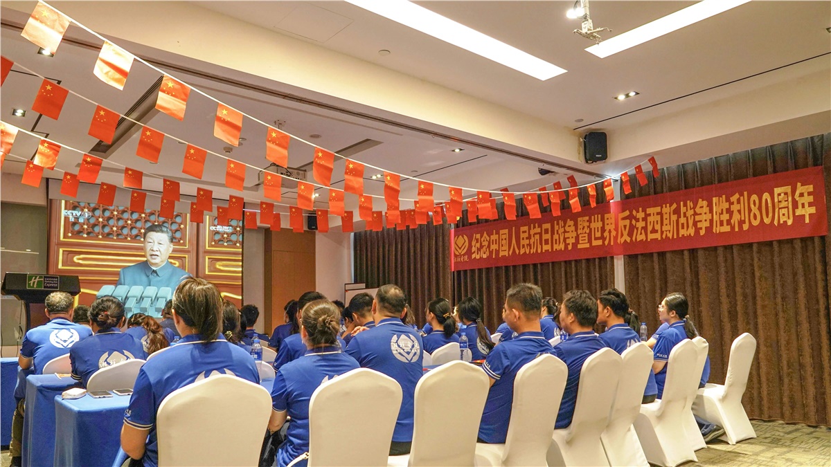 2025年9月3日上午9時,中國以一場盛大閱兵,紀念中國人民抗日戰爭暨世界反法西斯戰爭勝利80周年。湘聯電纜組織員工通過直播觀看了此次閱兵,共同紀念這場歷經14年,近代以來中國反抗外敵入侵第一次取得完全勝利的民族解放戰爭,緬懷革命先烈,感受抗戰精神,汲取奮進力量。