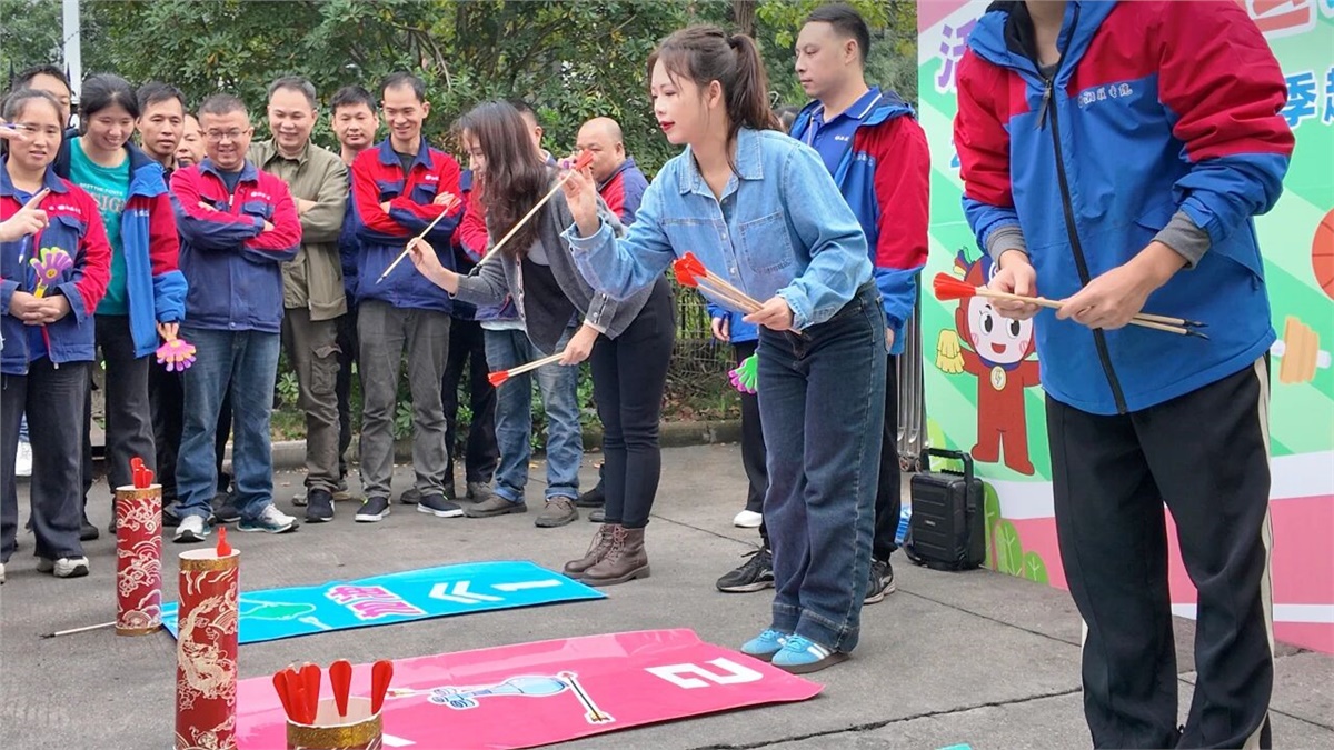 個人項目環節同樣精彩紛呈?!?21請回答”猜歌游戲中,每當旋律響起,參賽者們便凝神細聽,快速反應,搶占答題擂臺,現場熱鬧非凡;投壺項目中,大家全神貫注,盡顯專注與沉穩,感受傳統運動的魅力;“公雞下蛋”項目更是引得全場笑聲不斷,成為當天最受歡迎的項目之一。