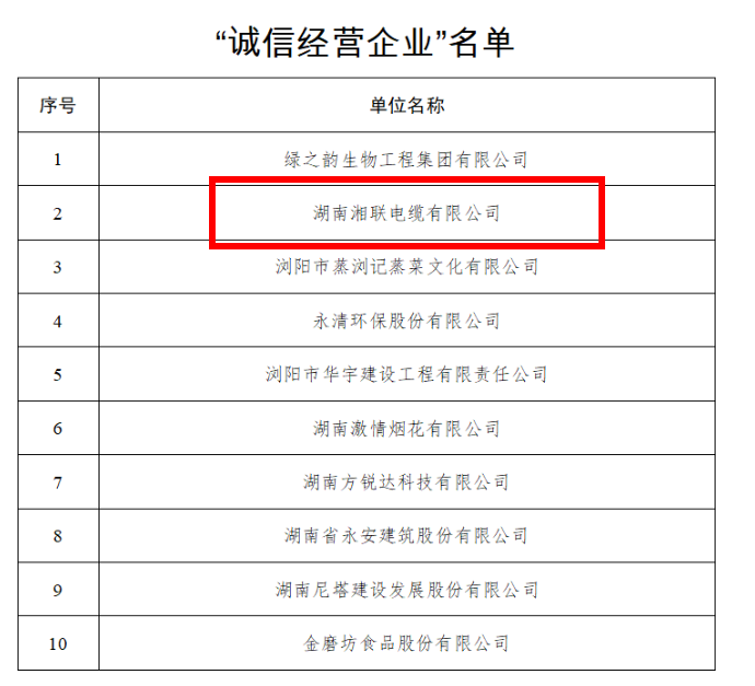 點(diǎn)贊!湘聯(lián)電纜獲評(píng)“誠(chéng)信之星”!